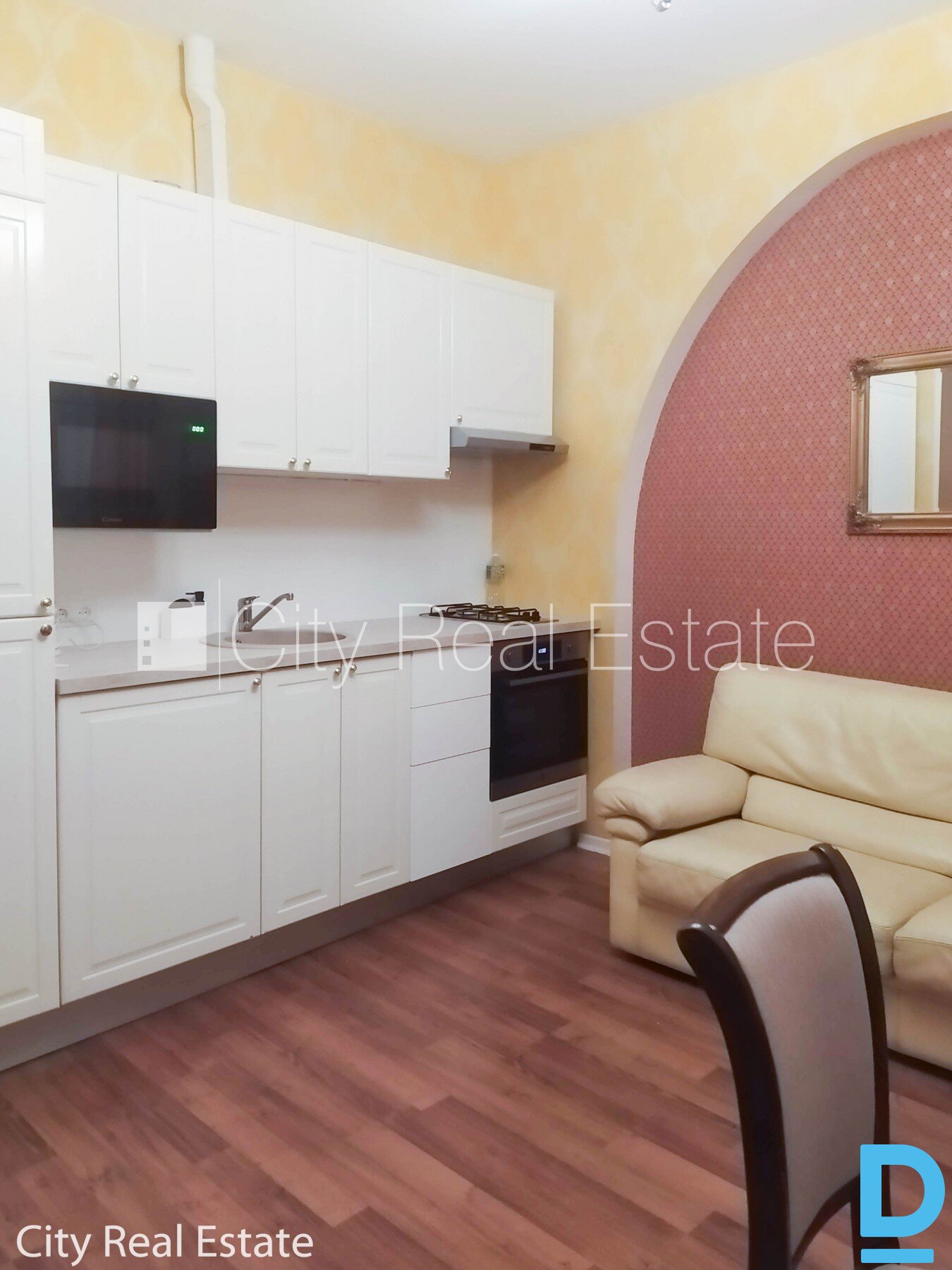 | Front building, entrance from street, elevator, staircase after capital renovation, studio-type kitchen combined with living room, central heating system, new plumbing, bathroom and WC separated, bath, build in kitchen unit, sofa, double bed, kitchen table, kitchen chairs, wardrobe, electric range, oven, steam sip-off machine, microwave , CITY REAL ESTATE ID - 515686 | |