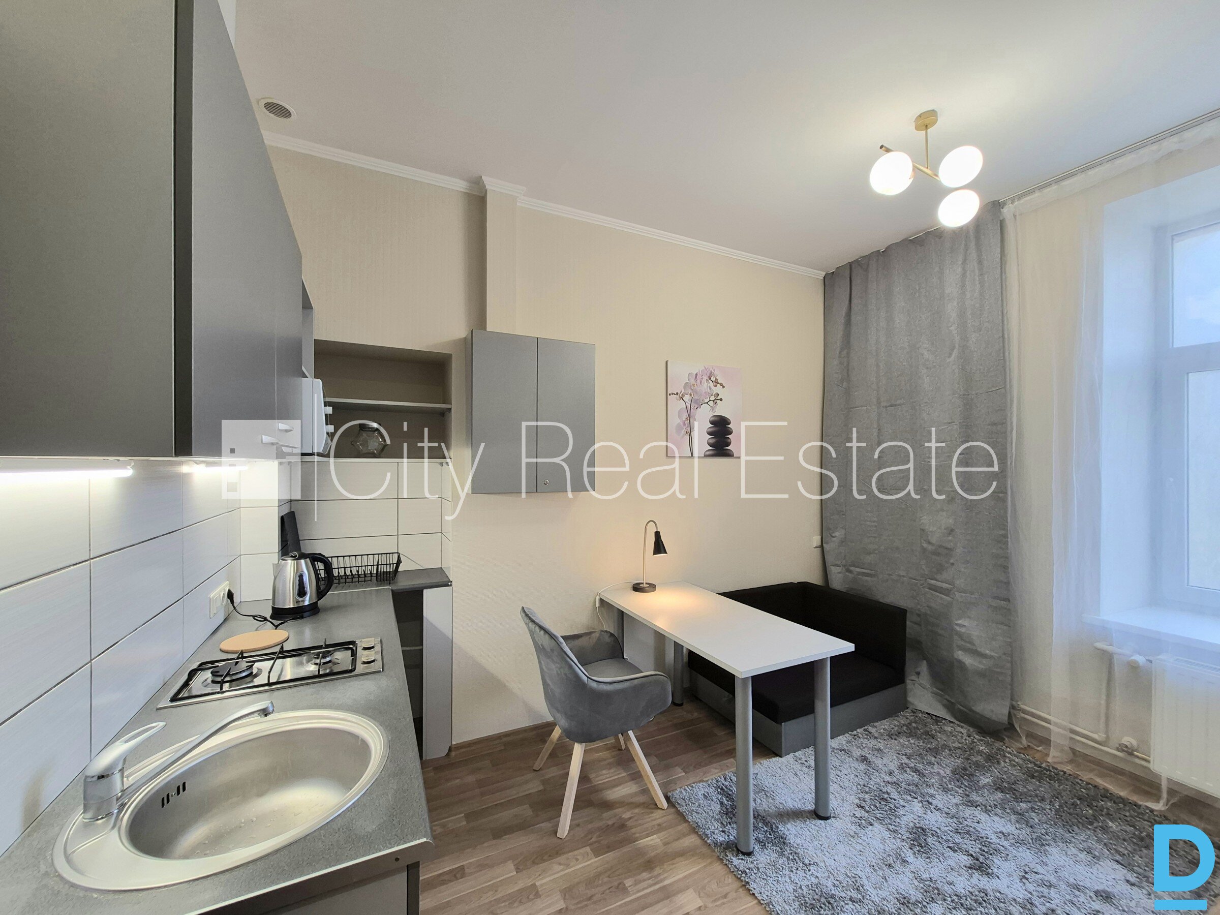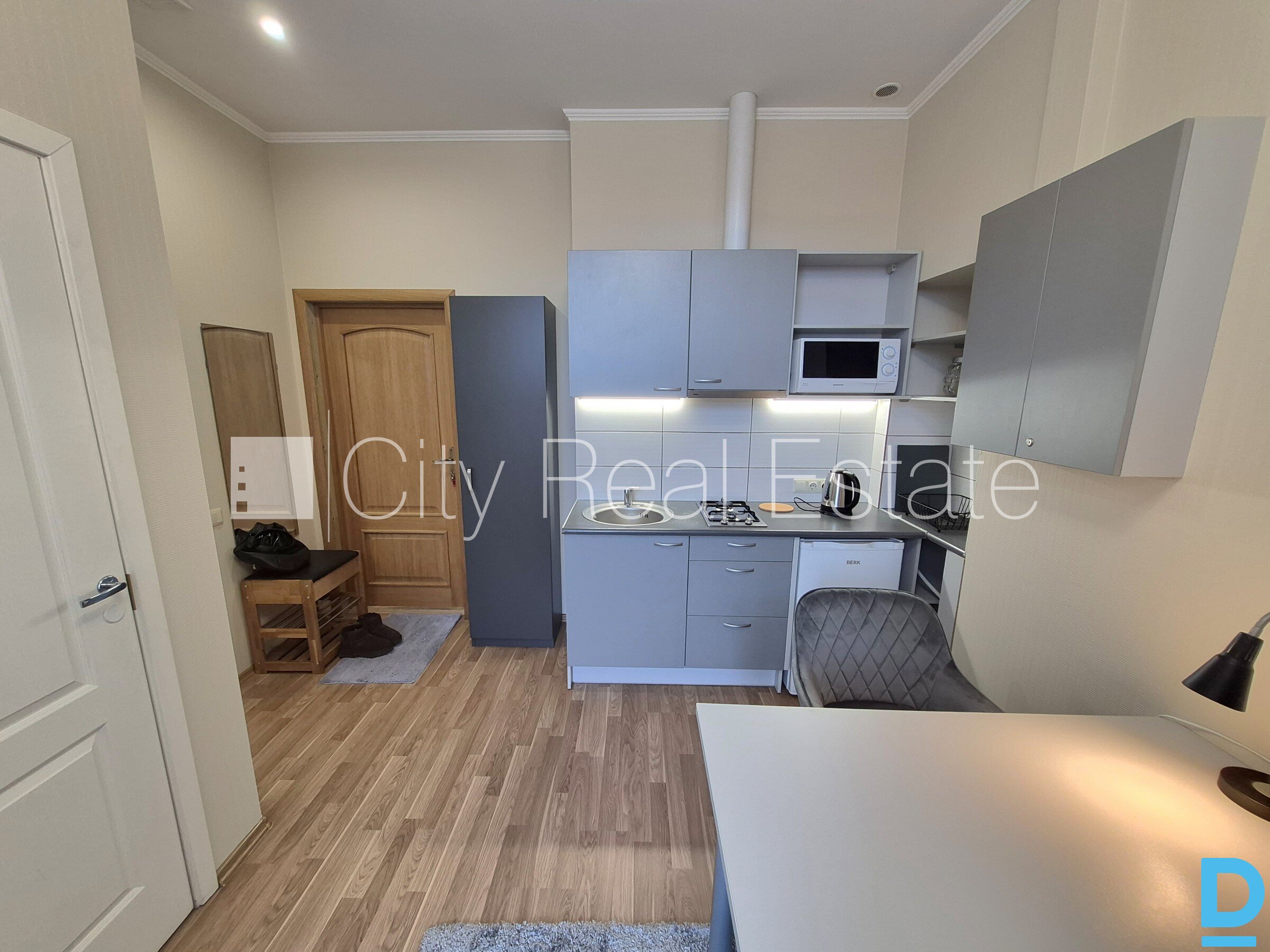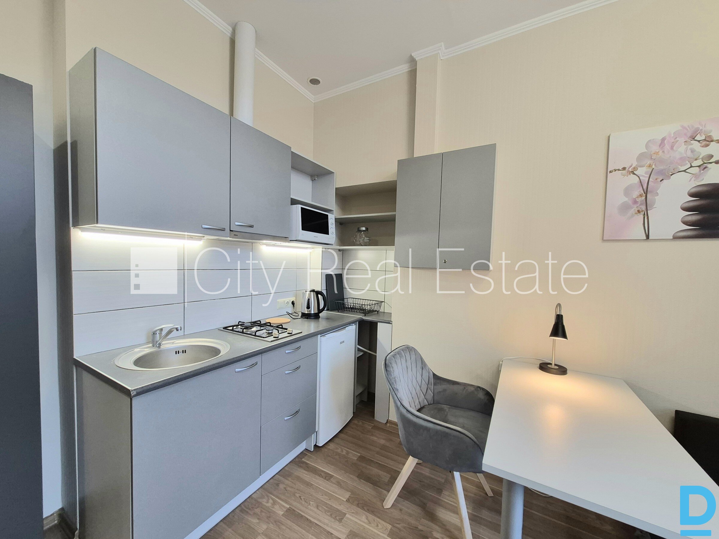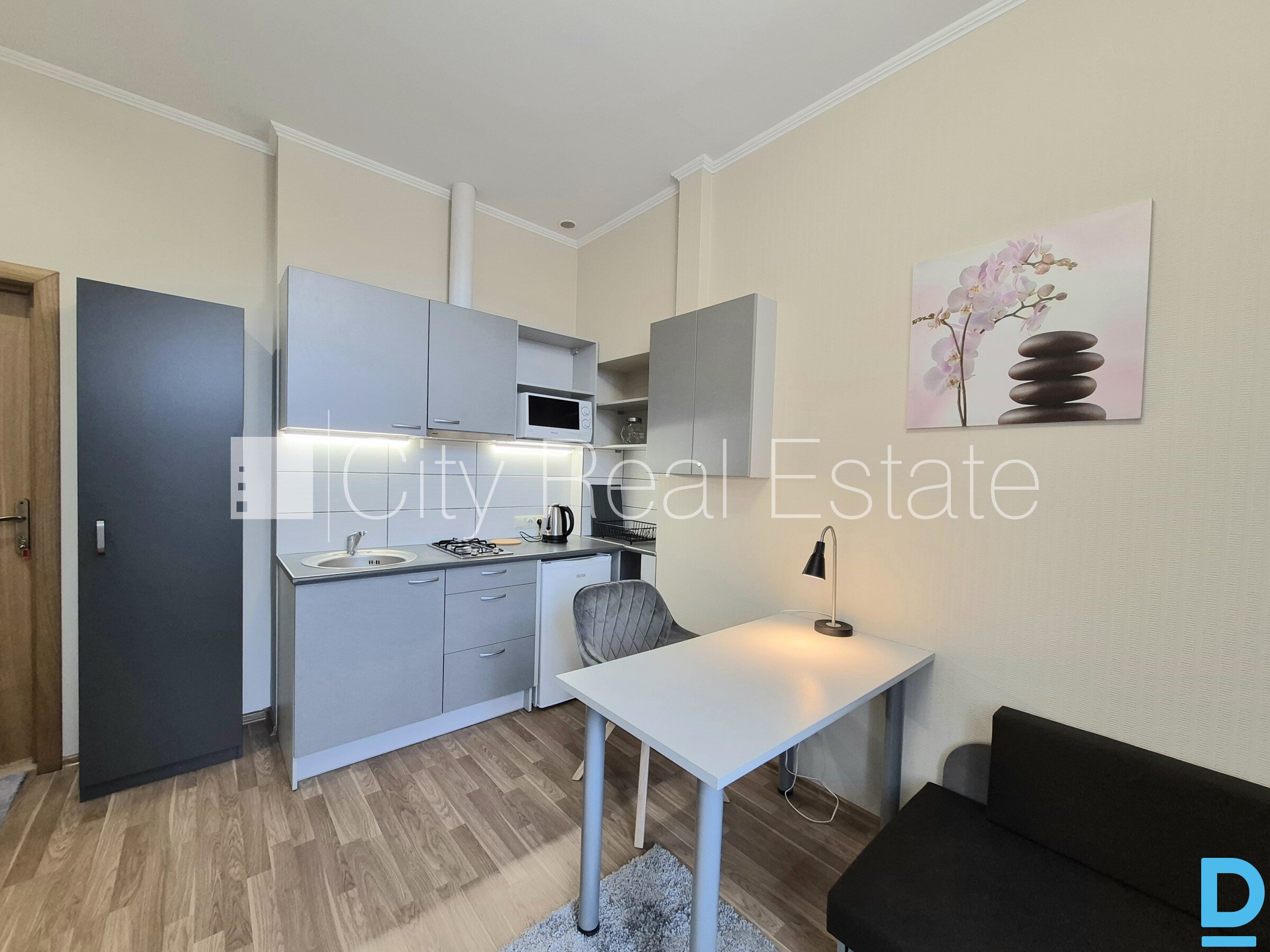 | Courtyard building, indoor courtyard, entrance from courtyard, high first floor, windows are located on courtyard side, one room isolated, studio-type kitchen combined with living room, gas heating, new plumbing, bathroom with WC, shower stall, build in kitchen unit, double bed, kitchen table, reclining chairs, wardrobe, mirror, refrigerator, gas-stove, steam sip-off machine, microwave , washing machine, reading-lamp , pillows, bedclothes, dishes , available, if you choose this real estate, you have to pay agency transaction commission which is equal with one half (50%) of this real estate month rental payment, CITY REAL ESTATE ID - 517996 | |
