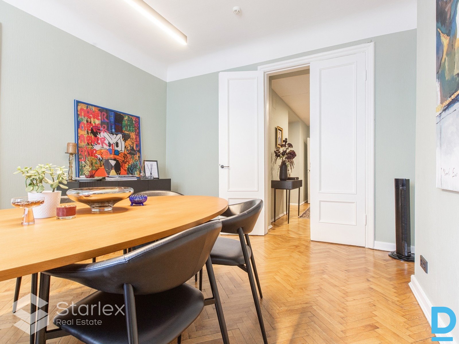 | Office space for rent in the center of Riga (intersection of Ģertrūdes/Akas streets), Ģertrūdes street 20. The apartment building with shops was built in 1939 - architect Nikolajs Voits. The building is a canonical work of expressive functionalism. Its artistic composition, dominated by a pronounced corner bay window, is based on the principle of contrast: horizontal window ribbons are divided by high stairwell volumes blocked by small balconies. Facade building, 3rd floor, solid staircase, respectable neighbors, there is an elevator. Layout: 5 work rooms, 2 WC/shower. Amenities: central heating, sanitary facilities, fire alarm, security alarm. all communications. Additionally, you have to pay for utilities - heating, electricity, water, garbage disposal. Utility bills in 2025 from 232 EUR in the summer months to 534 EUR in the coldest winter month. Management fee and real estate tax are included in the rental fee. Minimum contract term - 2 years; Preferred 3-5 years. The office has parquet floors and historic ceilings. Total area: 135 m². Rental fee: 1485 €/m² (11 €/m²) + utility bills. | |