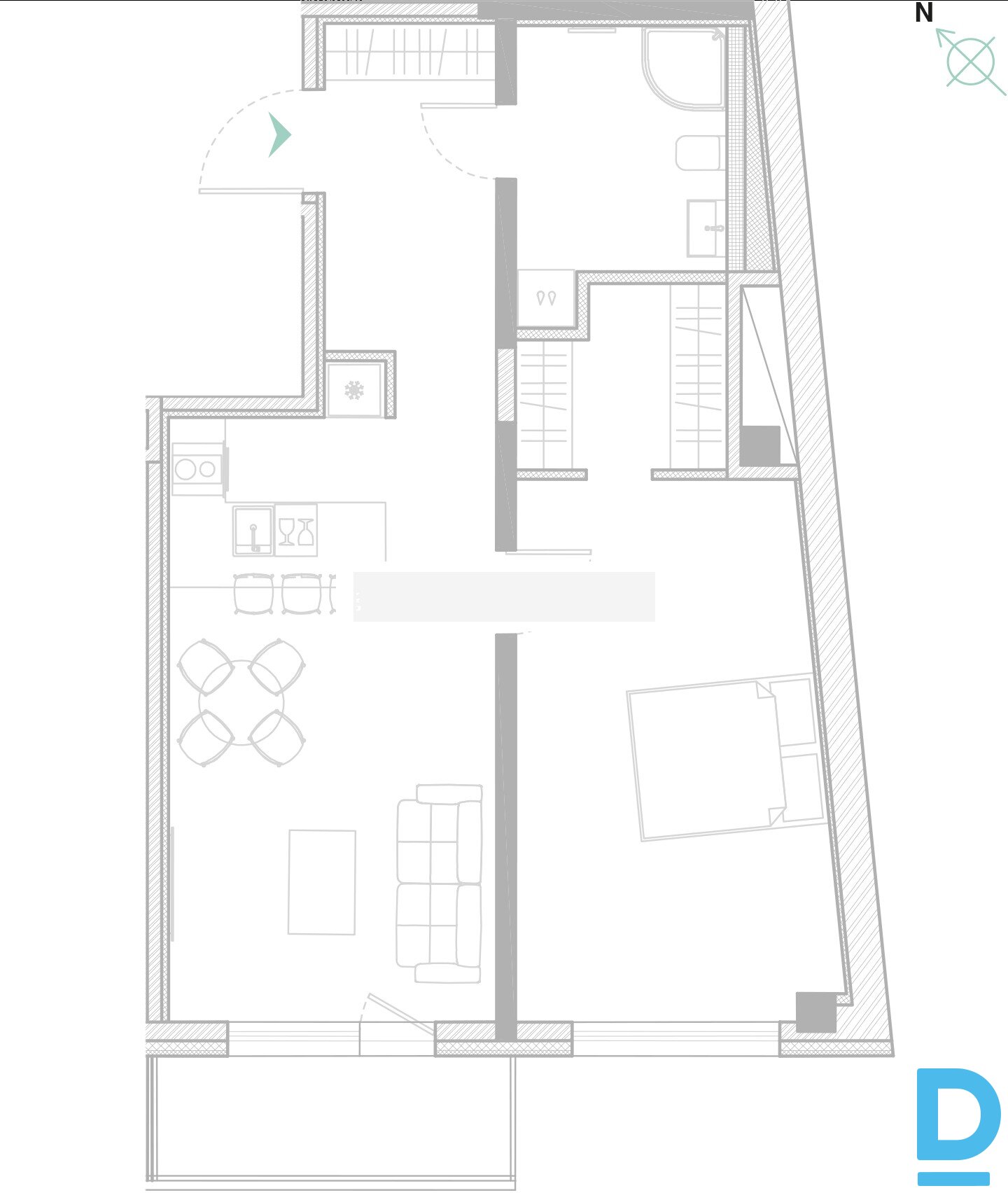 | Jaunceltne, labiekārtots apzaļumots pagalms, iespēja nomāt autostāvvietu, pazemes autostāvvieta, balkons, guļamistabu skaits 1 gab., studio tipa, virtuve apvienota ar viesistabu, apkures skaitītāji, individuāla apkures sistēmas uzskaite, krāsotas sienas, jauna santehnika, parketa grīda, sanitārais mezgls apvienots, dušas kabīne, iebūvēta virtuves iekārta, iebūvēti sienas skapji, ledusskapis, trauku mazgājamā mašīna, elektriskā plīts, cepeškrāsns, tvaika nosūcējs, veļas mašīna, internets, namrunis, diennakts videonovērošana, slēgta kāpņu telpa, projektā vēl pieejami dzīvokļi 3 gab., izvēloties šo īpašumu, komisijas maksa par starpniecības pakalpojumiem ir vienāda ar vienu pusi (50%) no šī īpašuma viena mēneša īres maksas, CITY REAL ESTATE ID - 517731 | |