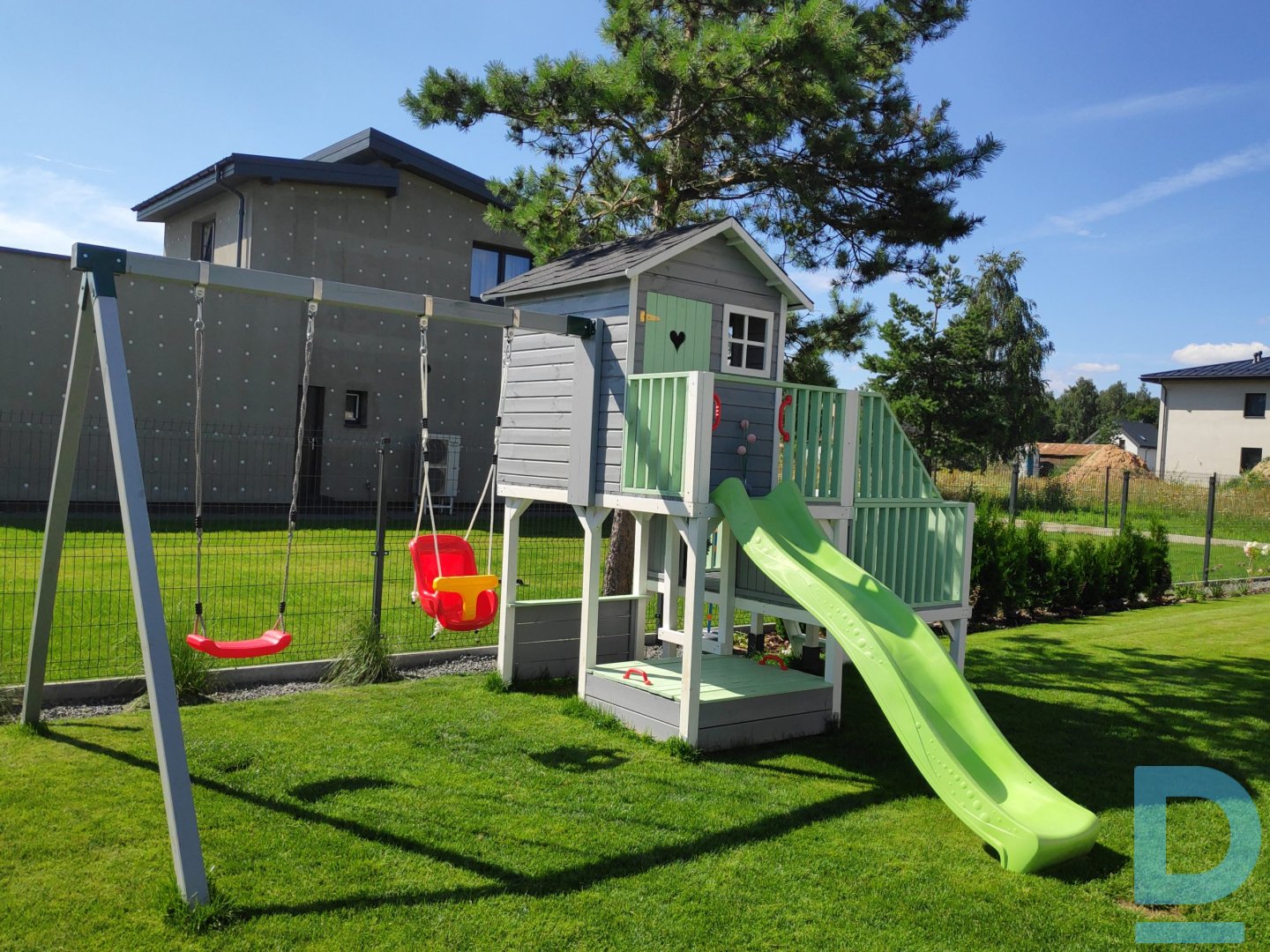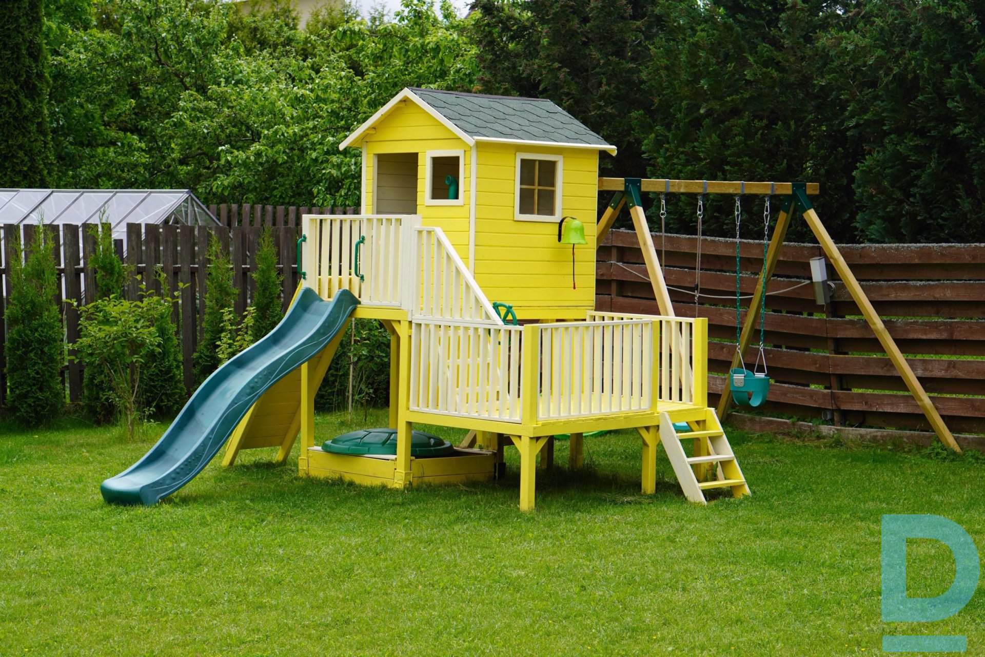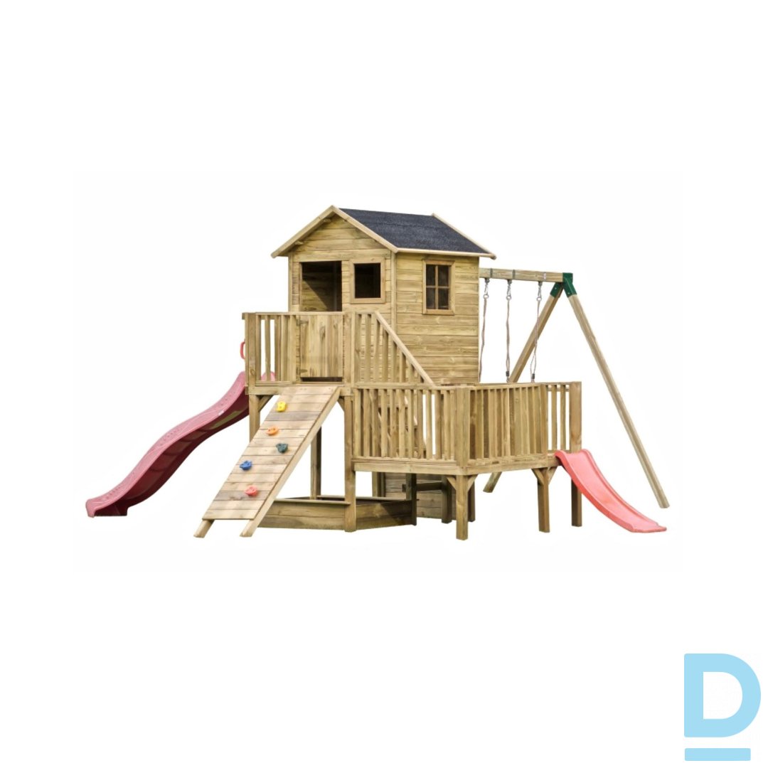 Koka spēļu namiņš bērniem “Kārīte” + šūpoļu D modulis