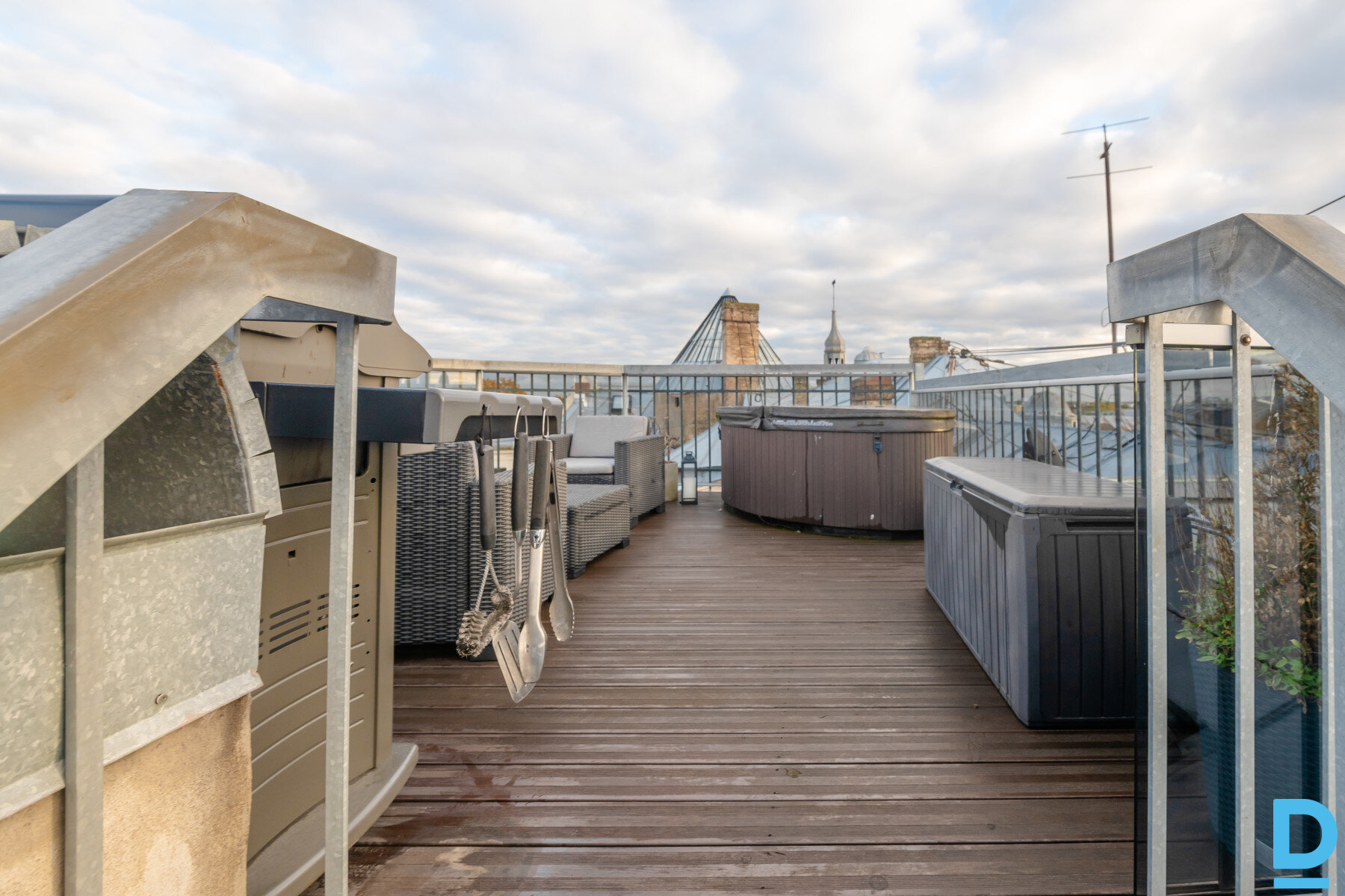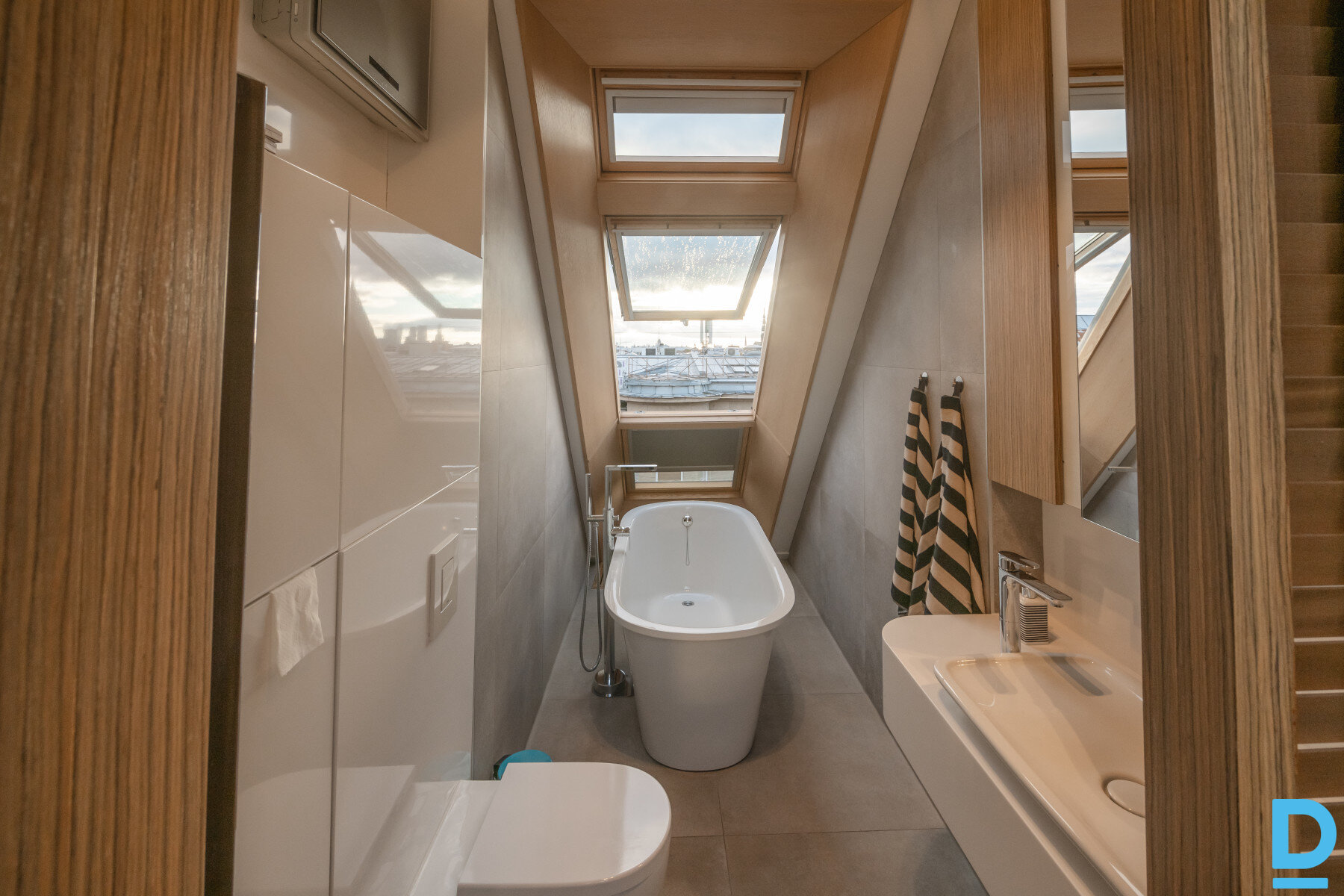 Ekskluzīvs penthauss ar jumta terasi un panorāmas skatu. Rīga, Centrs – Blaumaņa iela 31 Izbaudi mūsdienīgu skandināvu dizainu pašā Rīgas sirdī – unikāls divstāvu penthauss ar privātu 27 m² jumta terasi, džakuzi, grila zonu un iespaidīgu 360° panorāmas skatu pār pilsētas jumtiem. Īpašuma pamatinformācija Kopējā platība: 70,7 m² + 27 m² jumta terase Plānojums: 2 dzīvojamie stāvi + privāta jumta terase Stāvs: 6. (augšējais, bez lifta) Ēka: pirmskara jūgendstila ēka ar vēsturisku raksturu Arhitekts: Aleksandrs Vanags Autostāvvieta: koplietošanas pagalma stāvvieta iedzīvotājiem Interjers un dizains Dzīvoklis nesen pilnībā renovēts, izmantojot augstākās kvalitātes materiālus un radot harmonisku, tīru skandināvu stilu. Gaišas ozolkoka grīdas, individuāli izgatavotas mēbeles un plaši logi piepilda telpas ar gaismu un mājīgumu. Pirmais stāvs: Atvērta tipa dzīvojamā zona ar virtuvi Stikla bīdāmās durvis telpu nodalīšanai Pilnībā aprīkota virtuve ar iebūvētām ierīcēm (trauku mašīna, cepeškrāsns, ledusskapis, saldētava, veļas mašīna) Ēdamzona integrēta modernajā koka mēbeļu dizainā Viesistabā – iebūvēts vīna plaukts un dekoratīva balta ķieģeļu siena Otrais stāvs: Galvenā guļamistaba ar skatu uz pilsētas jumtiem Kabinets vai viesu istaba Vannas istaba ar brīvi stāvošu vannu un panorāmas skatu Peldošās kāpnes kā elegants interjera akcents Katrs iebūvētais elements veidots ar īpašu rūpību, apvienojot estētiku un funkcionalitāti. Papildu priekšrocības: Iebūvētas mēbeles un plauktu sistēmas 2 guļamistabas ar iebūvētām gultām un skapjiem Tikko pārkrāsotas sienas un atjaunotas grīdas Dzīvoklis gatavs tūlītējai ievākšanai Ideāla izvēle tiem, kuri novērtē kvalitāti, estētiku un pilsētas enerģiju. |