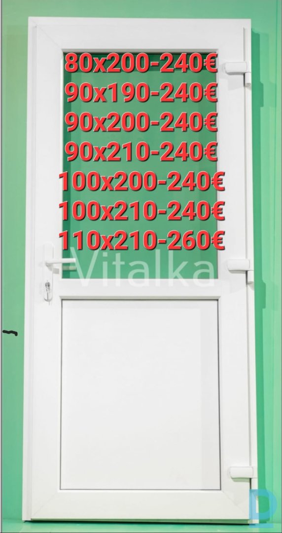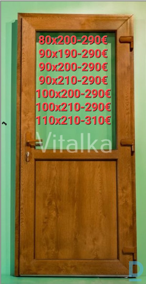 Jaunas Pvc ārdurvis. Noliktavā pieejami vairāk nekā 800 gb. , durvju. CENAS NORADĪTAS AR PVN 21% sešu kameru vācu (Fischeer) profils 81mm abās puses ir vienāda krāsa stikla pakešu logs 24mm (ar argonu 4 + 16 +4, 1, 0kW) un 24mm PVC panelis metāla kvadrātveida caurule 2 mm durvju vērtnē, 2 mm П veida kārbā alumīnija slieksnis (augstums 2 cm) 3 izturīgas 3D eņģes, vertikāli un horizontāli regulējamas komplektā ietilpst piederumi (atslēgu slēdzene, rokturi, skrūves) CENAS NORADĪTAS AR PVN 21% Piegāde pa visu Latviju 15-35€. Pieņemam pasūtījumus līdz 22:00 bez brīvdienām. Noliktavas adrese: Rīga, Priedaines iela 41B, LV-1029 Darbā laiks: Darbā dienas no 8.00 līdz 18.00 Sestdien no 9.00 līdz 17.00 Svētdien BRĪVS T.253 868 21 (UZ ZVANIEM ATBILDAM BEZ BRĪVDIENAM) WWW.VITALKA.LV |