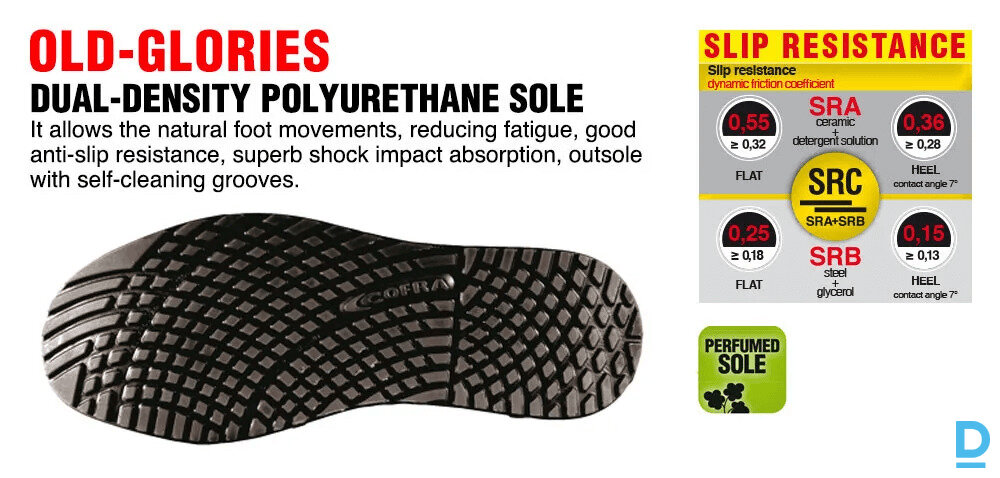 PLAYMAKER COFRA Ādas Ziemas Darba Puszābaki S3S CI FO SR Zero Perforation Midsole Breathable Black Red Made in ITALY Drošības Darba Apavi Specapavi Aizsargapavi Virspuse : ūdeni atgrūdoša, uzvelkama nubuka āda Iekšējā odere : ekoloģiska kažokāda, ļoti izolējoša, elpojoša, nodilumizturīga Ārējā odere : elpojoša āda Zolīte : PU15, izgatavota no aromatizēta un ļoti triecienus absorbējoša poliuretāna, pateicoties 15 mm biezumam papēža zonā, anatomiska, antistatiska, ar caurumiem. Augšējais slānis, kas izgatavots no auduma, absorbē mitrumu un uztur pēdu sausu. Pirksta uzgalis : ALUMĪNIJA 200 J Starpzole : nemetāliska APT PLUS - bez perforācijas Zole : divējāda blīvuma poliuretāns Platums : 11 Mondopoint Apavi, kas īpaši izstrādāti un ražoti, lai nodrošinātu perfektu termisko komfortu pat lietotājiem, kas strādā zemā temperatūrā. Zoles savienojums, kas bagātināts ar patīkamu esenci, kas nodrošina patīkamu aromātu. COFRA, pievēršot uzmanību darbinieku komfortam, cenšas atrisināt svarīgu diskomforta avotu darbiniekiem ar specifiskām slimībām, kas var radīt sāpes vai diskomfortu, ko izraisa stājas problēmas un kas saistītas ar pēdu patoloģijām. Pateicoties sadarbībai ar ortopēdiskajām darbnīcām un īpašu skeneru izmantošanai, daži COFRA produkti var būt piemēroti lietotājiem ar specifiskām patoloģijām. Vācijas regula DGUV 112-191 kontrolē ortopēdisko zolīšu lietošanu, lai tās varētu izmantot drošības apavos, bet tikai pēc derīgas atkārtotas sertifikācijas. Daži COFRA produkti ir atkārtoti sertificēti. Tos var lietot ar īpašu ortopēdisko zolīti, ko ražo SPRINGER ortopēdijas darbnīca, saskaņā ar standartu EN ISO 20345:2022. ALUMĪNIJA PIRSTA UZLIKLIS (200 J) SVARS: 54 g - izmērs 42 (8) EN ISO 12568:2010 — EN ISO 22568-1:2019 Svara samazinājums par 40% salīdzinājumā ar tēraudu. Anatomiska, antistatiska, perforēta zolīte, izgatavota no ļoti triecienus absorbējoša, aromatizēta poliuretāna. 15 mm biezums papēža zonā uzlabo triecienu absorbciju un izk |