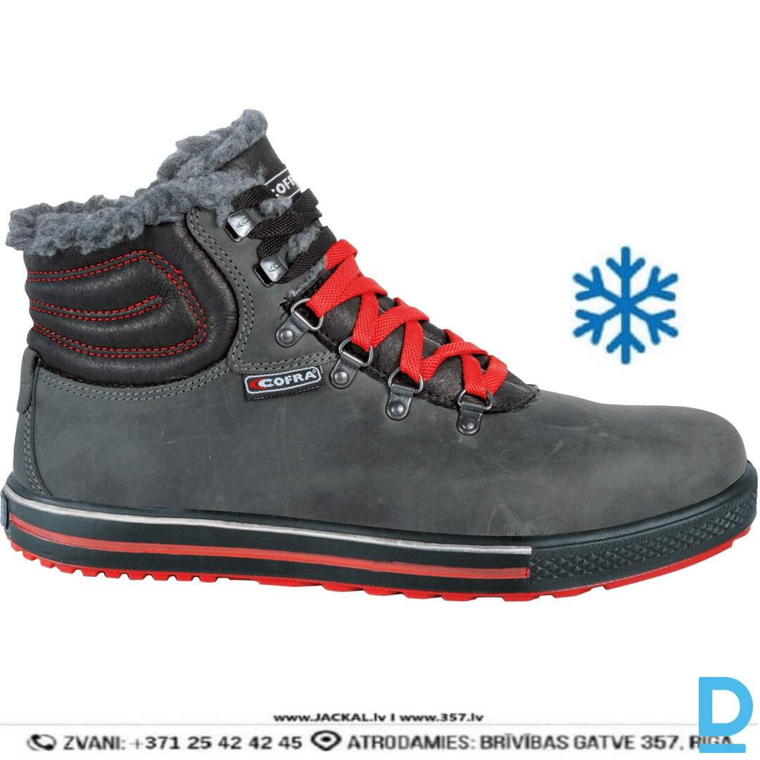 PLAYMAKER COFRA Ādas Ziemas Darba Puszābaki S3S CI FO SR Zero Perforation Midsole Breathable Black Red ITALY Drošības Darba Apavi Specapavi Aizsargapavi