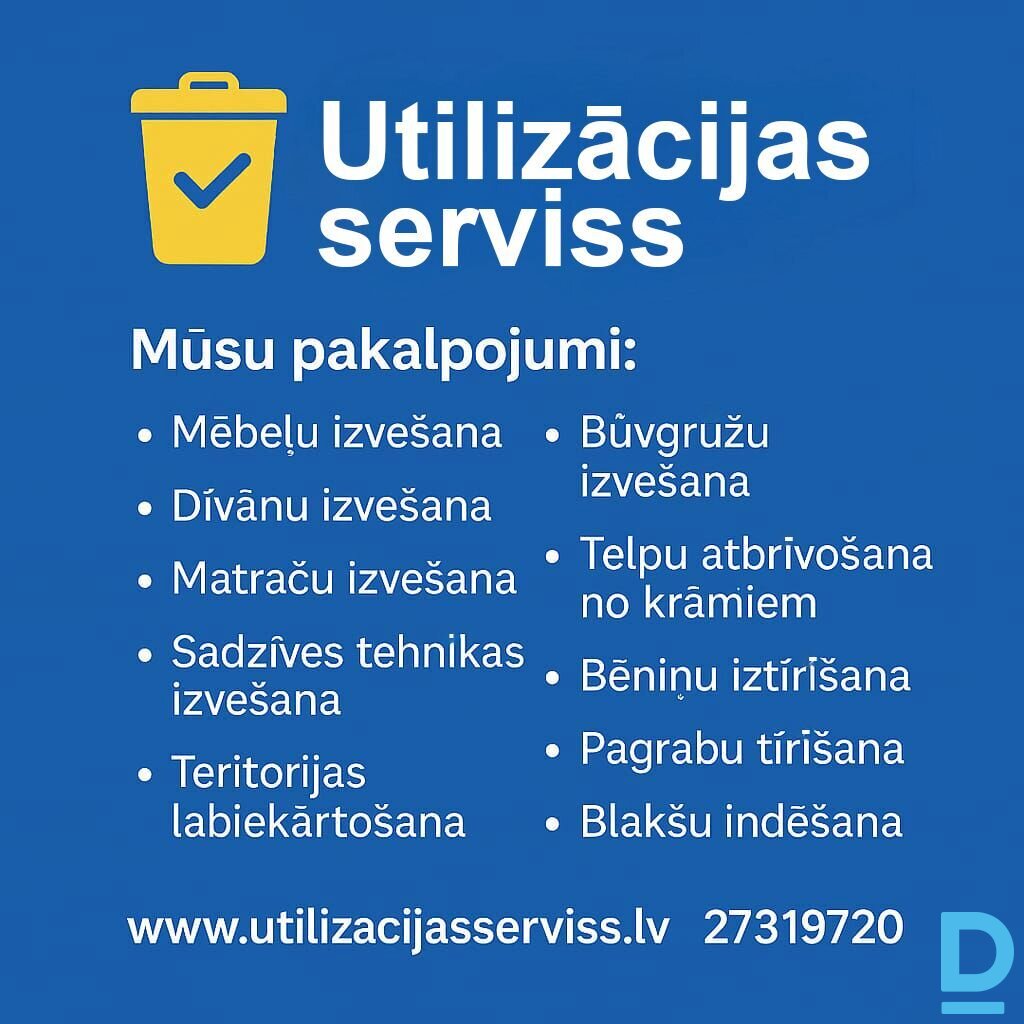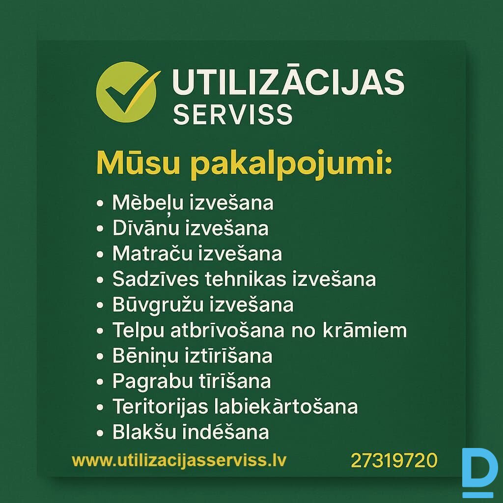 Pilns Utilizācijas Serviss Esam pieredzējuši dažādas situācijas, kurās jāveic vecu mantu utilizācija, mēbeļu izvešana, mēbeļu utilizācija, matraču izvešana, dīvana izvešana, iekštelpu interjera un starpsienu demontāža, dažāda apjoma būvgružu izvešana, tādēļ vienkārši sazinieties, un mēs pateiksim, cik tas maksās |