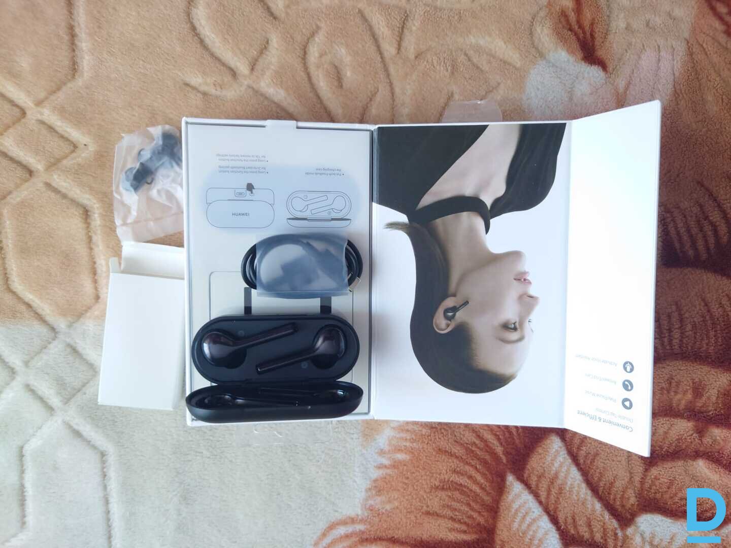 Huawei FreeBuds EarBuds - headsets | headphones Huawei FreeBuds austiņas vizuāli teicamā stāvoklī. Tehniski austiņas akumulatori nestrādā ļoti ilgi. Spotify - 2-3 stundas (150-180 minūtes), Youtube - 60-80 minūtes. Ladētāja uzlāde var nodrošinat 3 austiņu ladēšanas reizes. Komplektā nāk: kaste, USB-C vads, uzgaļi. Cena - 6 EUR. Nosūtīšu ar pakomātu. Unisend vai Latvijas pasts - 1,50 EUR Pairing: Open case cover > switch on BT on the phone (etc.) > Press FreeBuds button on the back of case for 5 sec. > Accept pairing on the phone etc. |