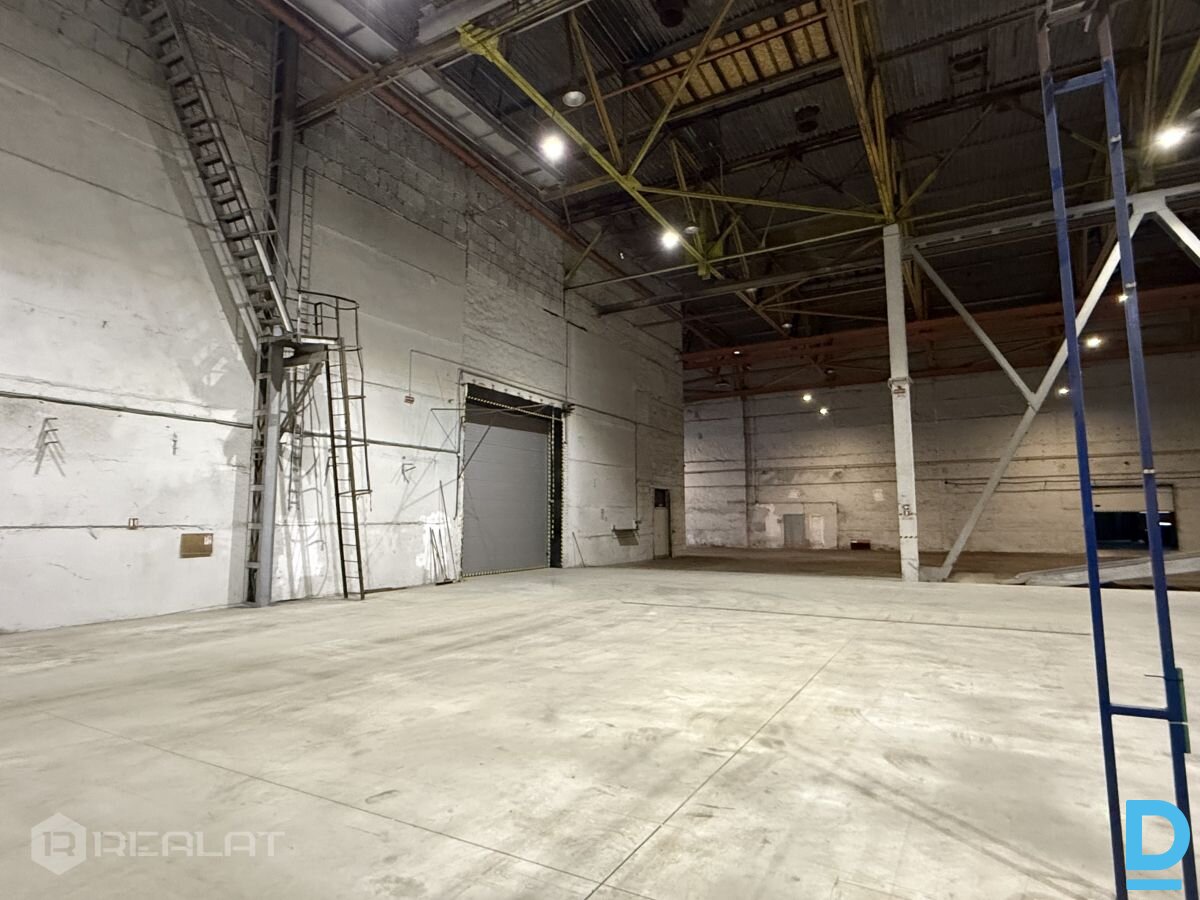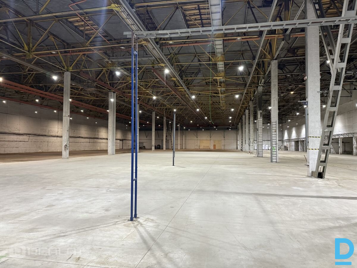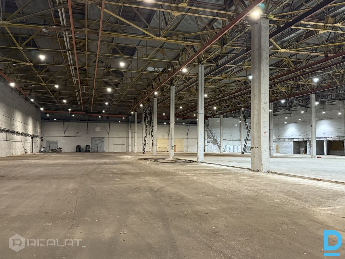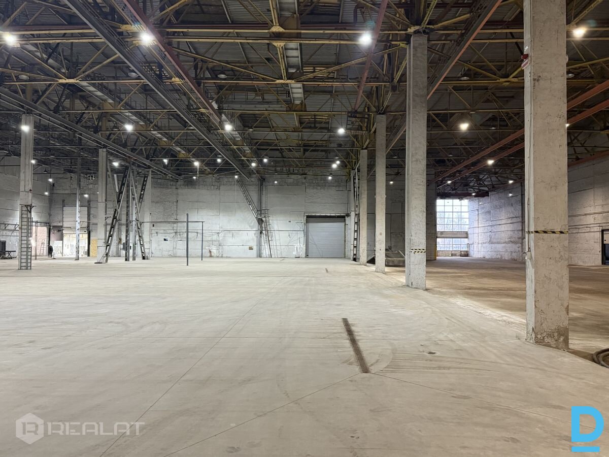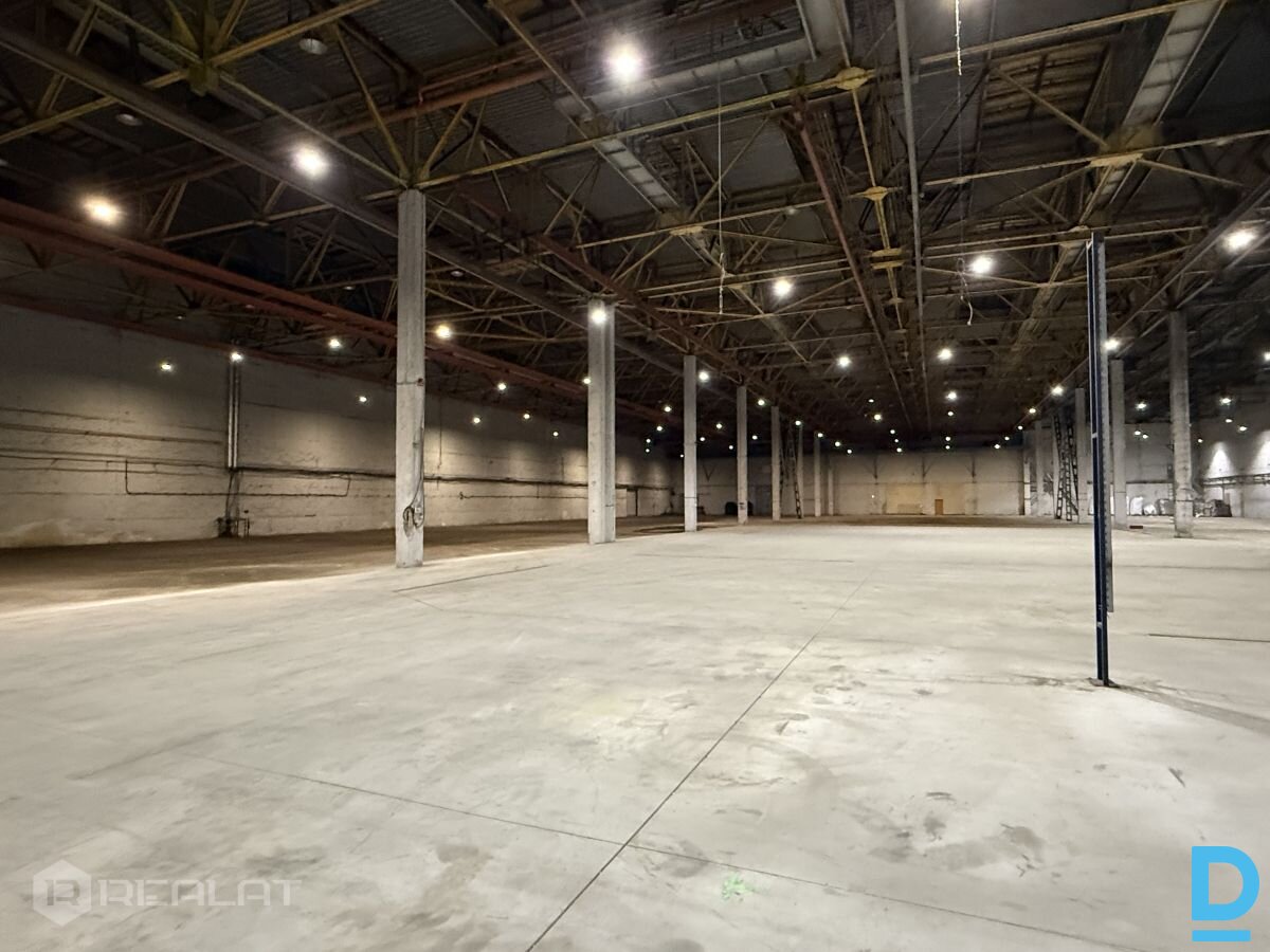 Iznomā apkurināmas noliktavas / ražošanas telpas + Platība 10000 m2. + Pieejamas biroja telpas un ģērbtuves + Gludas betona grīdas 8 t./m2. + Griesti 12m. + Uzstādīti telferi 3.6 t. , 12 gb. + Liela elektrības jauda + Pilsētas ūdens un kanalizācija + Zemes līmeņa vārti 4 x 4.5 m. (2 gb.) un 3.5 x 3.5 m. (2 gb.) + Nožogota , apsargājama teritorija + R zona |